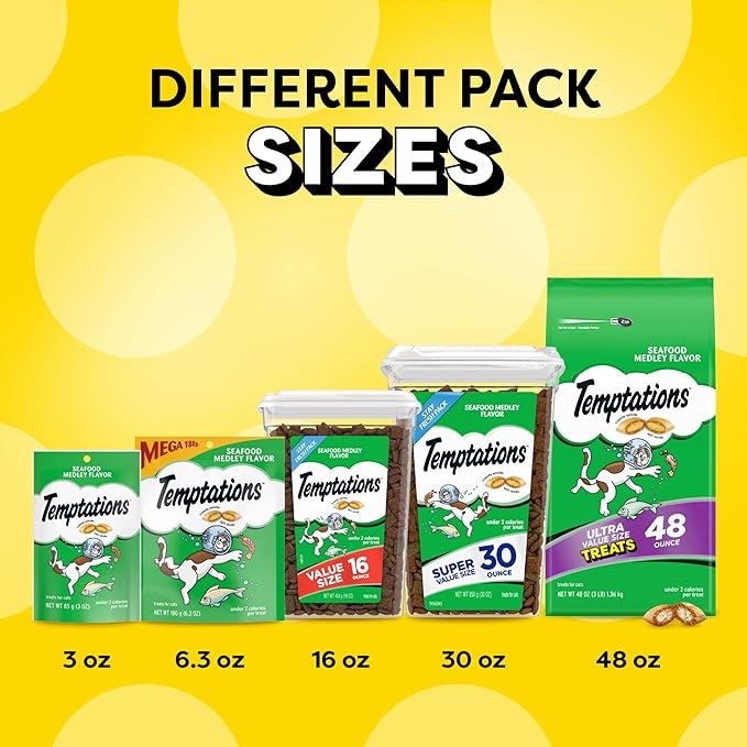 Temptations Classic Crunchy and Soft Cat Treats, Seafood Medley Flavor, 6.3 oz. Pouch (Pack of 10)