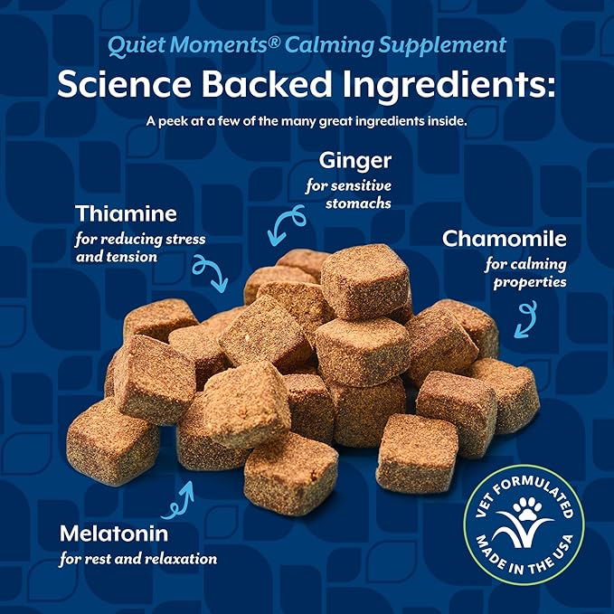 - Crafted with Calming Botanicals: Our unique blend of Thiamine and L‑Tryptophan, Ginger, Chamomile, and Melatonin is designed to help melt away stress for your dogs, support sensitive stomachs, and promote peaceful rest
