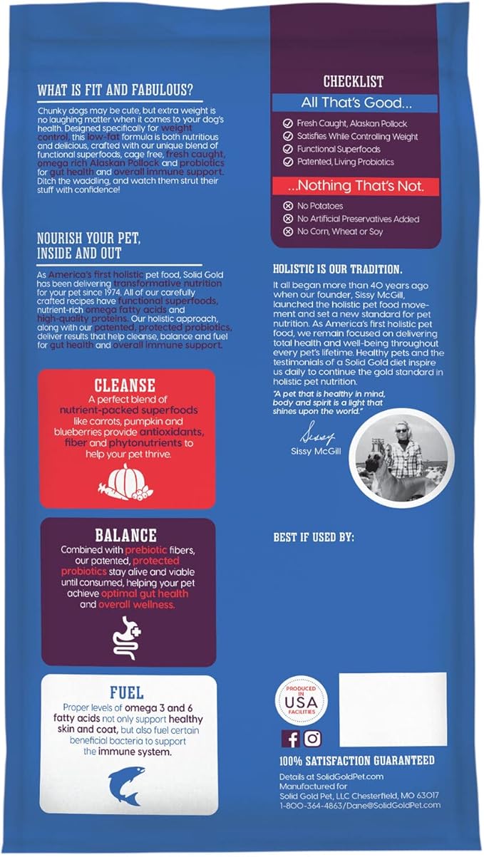 Solid Gold Healthy Weight Management Dry Dog Food for Adult & Senior Dogs - With Pollock, Whole Grain & Probiotics for Gut Health & Digestion Support - Dry Dog Food for Weight Management Support –24LB