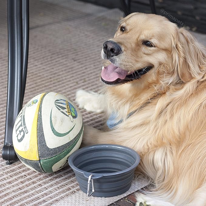 Sale Collapsible Silicone Water Travel Bowl with Clip for Dog and Cat, Portable and Durable Pop-up Feeder for Convenient On-The-go Feeding Size: Large (5 Cups) Grey