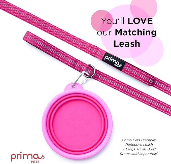 Prima Pet Collapsible Silicone Water Travel Bowl with Clip for Dog and Cat, Portable and Durable Pop-up Feeder for Convenient On-The-go Feeding – Size: Large (5 Cups) Pink