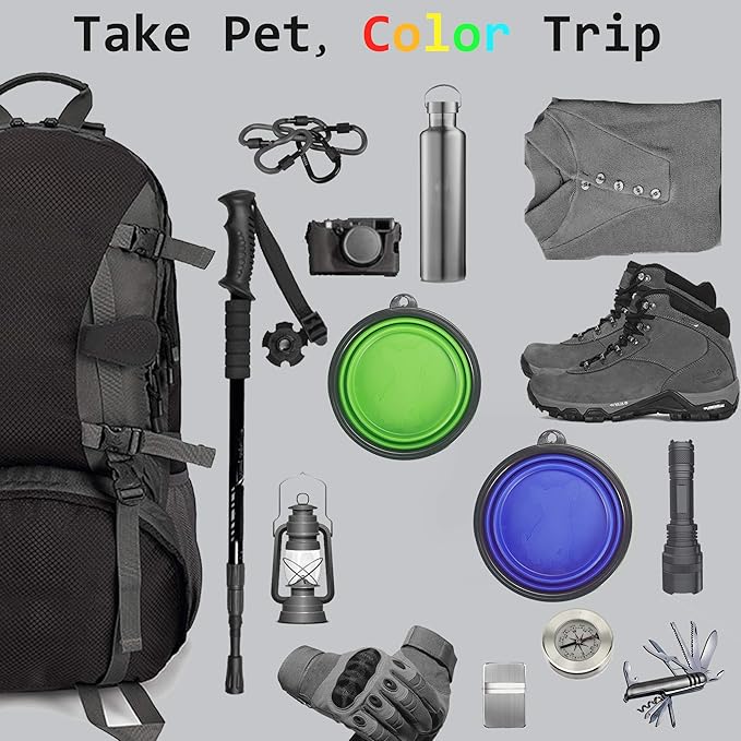 - EASY FOR STORAGE AND TRANSPORTATION: Non-Slip collapsible dog bowl set great for travel dog bowl, pet travel bowl and cat food bowl - The Bowls include color-matching carabiners clip it or collapse it to your backpack, purse, dog travel crate, dog training leash or collapse flat for your pocket, stroller, glovebox AND MORE! Terrific Pet Supplies for Dogs Water Bowl or Dog Travel Bowl