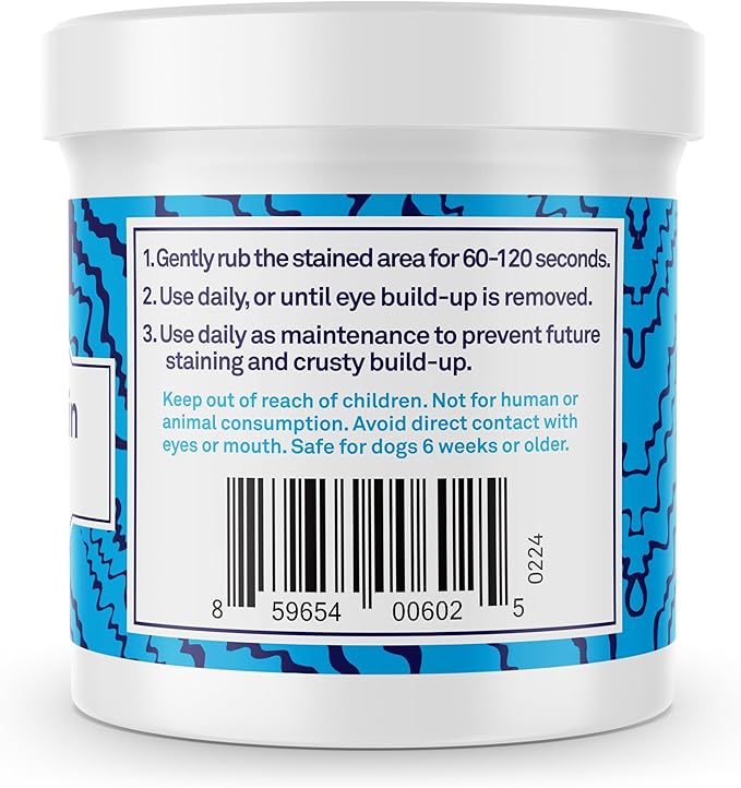 - GENTLE EYE WIPES FOR DOGS. Specially designed dog eye wipes to gently remove tear stains, discharge, and buildup around the eyes and face. Safe for daily use on white and light-colored coats.