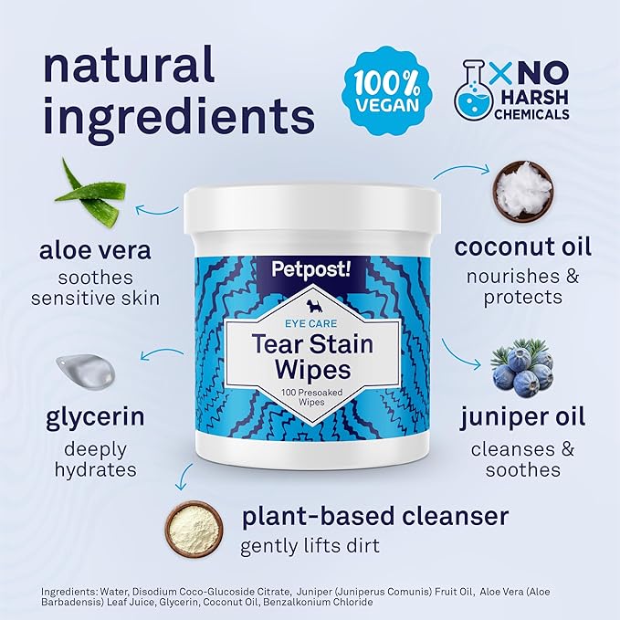 - COMPLETE PET CARE LINE. Pair these tear stain wipes with Petpost Wrinkle Wipes, Paw Wipes, and Grooming Wipes for a full cleaning routine that keeps your dog looking and feeling fresh.
