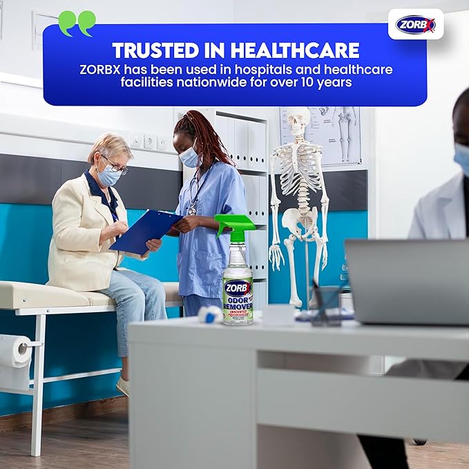 ZORBX Unscented Odor Eliminator for Strong Odor 16 oz - Pack of 2 - Used in Hospitals & Healthcare Facilities - Advanced Trusted Formula, Fast-Acting Odor Remover Spray for Dog, Cat, House & Carpet