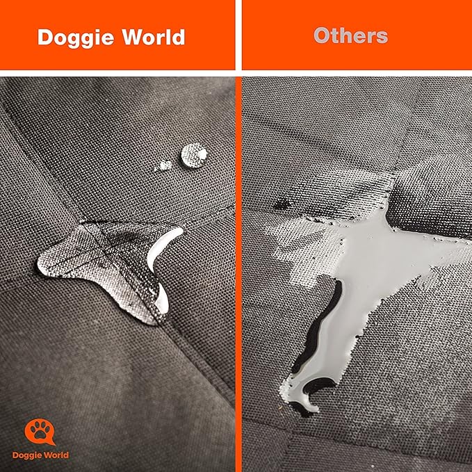 - [ Cleaned In No Time ] - Our material is made of a top layer of 600D Oxford waterproof cotton and a middle layer of Oxford 210D with waterproof coating. Therefore you’ll be able to simply vacuum away dirt, hair, and mud or give it a quick wipe with a damp cloth, which makes this dog back seat cover perfect for your dog travel accessories.