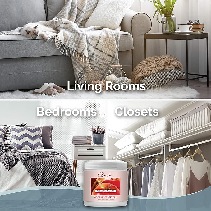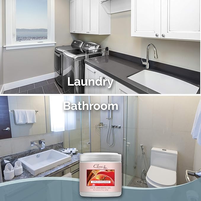Clear Air Odor Absorber Gel - 15 oz, Pack of 2 - Air Freshener Absorbs and Eliminates Odors in Bathrooms, Cars, Boats, RVs and Pet Areas - Made with Essential Oils - Apple Cinnamon Scent