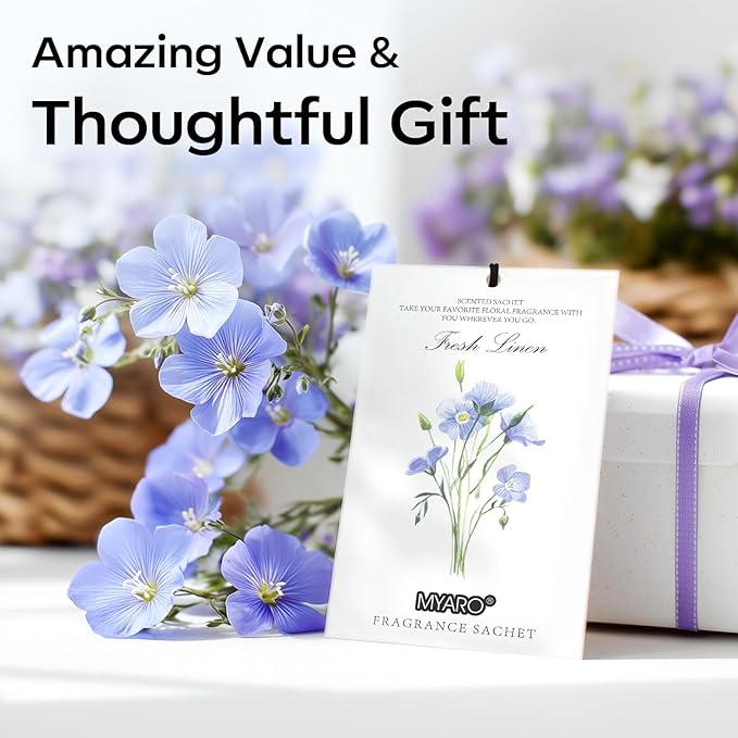 MYARO 12 Packs Linen Scented Sachets for Drawer and Closet, Long-Lasting Sachets Bags Air Freshener Fresh Scents, Potpourri Bags Home Fragrance for Lover