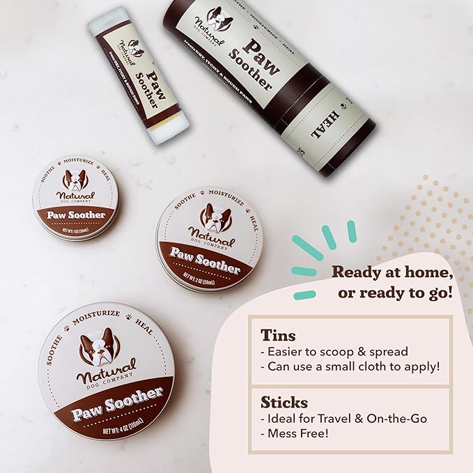 - SOOTHES & HYDRATES DRY, CRACKED PAW PADS – The Paw Soother 4 oz tin delivers rich, long-lasting moisture to rough, flaky, or cracked paw pads. This balm supports comfort and softness, helping restore healthier paw texture and reduce visible dryness with regular use.