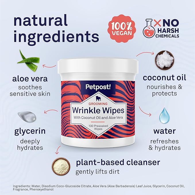 - PART OF THE PETPOST ROUTINE. Petpost offers more than wrinkle wipes. Try our Paw Wipes, Grooming Wipes, or Tear Stain Remover Wipes for head-to-tail care.