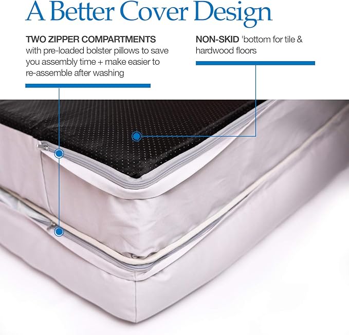 - Spacious & Machine Washable: bed with bolsters offers security. Water-resistant cover & liner repel messes. Non-skid bottom keeps it in place. Easy cleaning with removable, machine-washable cover