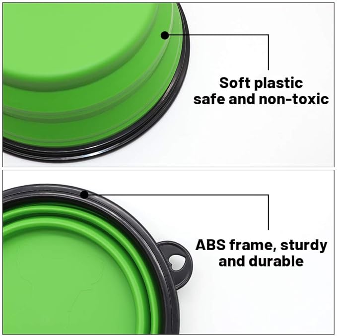 - DURABLE & SAFE PET FEEDER : These dog bowls are made of high quality soft plastic,odorless,durable and friendly.Absolutely essential for any one who has a dog/cat or travels with their pets. Collapsible & lightweight,easy to fold flat into a bag, the car.Feeding your pet water/food quickly whenever you want,perfect dog water& food feeder dishes for pet travels.