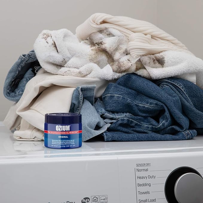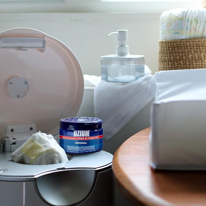 - IDEAL FOR BOTH SMALL AND LARGE SPACES: OZIUM odor eliminating gel eliminates unpleasant odors wherever you have them. Great for small spaces, use the 4. 5oz gel in cars, bathrooms, musty closets, gym bags and trash cans. For larger spaces, like kitchens, offices, garages and more, try the 8oz OZIUM gel.