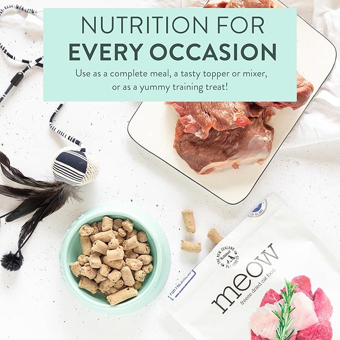 The New Zealand Natural Pet Food Co Meow Freeze Dried Cat Food - Lamb & Hoki Recipe, High Protein Treats, Meals & Toppers, Dry Cat Food, 9.9 oz