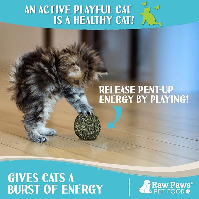 - ALL-NATURAL CATNIP TOY BALL: Raw Paws 100% all-natural catnip balls are safe and healthy for your cat, containing no artificial, toxic or addictive ingredients. Catnip edible balls act as a stimulant when sniffed, and a sedative when consumed!