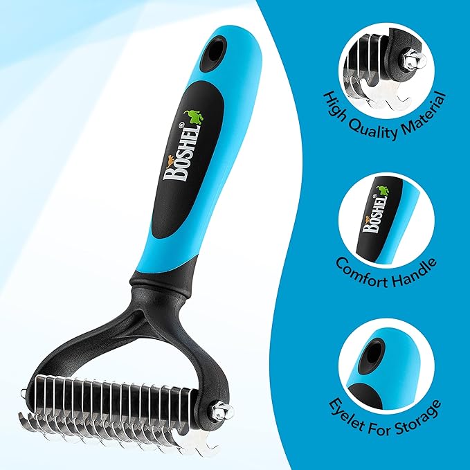 BOSHEL Dematting Comb for Dogs - Undercoat Rake for Dogs, Cat Deshedding Tool, Rake Brush Dematting Tool, Dog Undercoat Brush, Dematting Comb for Cats, Dog Hair Mat Remover, Dematting Brush for Pets