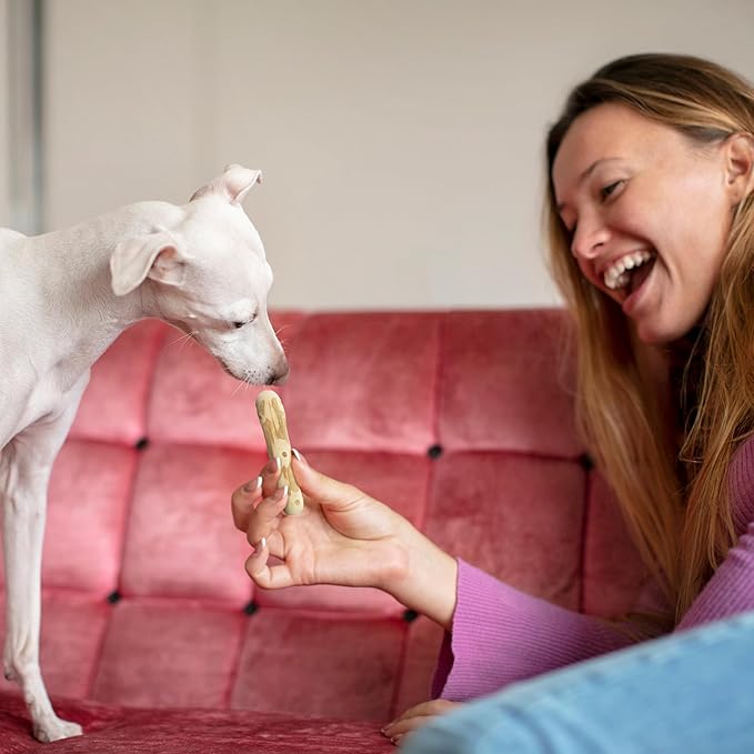 - ALWAYS CHOOSE THE RIGHT SIZE – To ensure both safety and satisfaction, select the correct chew size based on your dog’s weight and chewing behavior. This wood chew for dogs is recommended for small breeds under 22 lbs, such as Dachshunds, Pugs, or Jack Russell Terriers. For aggressive chewers, consider sizing up and limiting chew time to prevent overuse. Always supervise use, provide fresh water, and remove the chew once it becomes too small to handle safely.