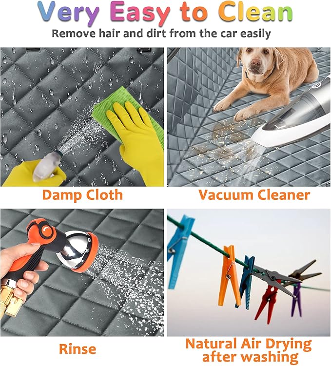 - EASY TO INSTALL & CLEAN - It only takes seconds to remove or install the dog back seat cover. You can view the video to know how to install. Easy to clean with a damp cloth or vacuum. The pet car seat cover is great gifts for every pet lover.