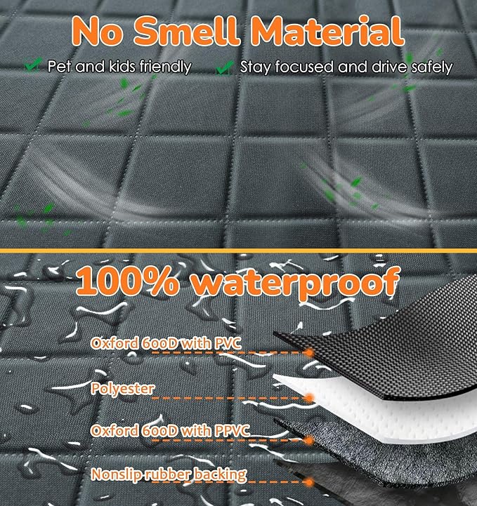 - No Smell Material: The dog seat cover without terrible smell is friendly for pets and children. In an enclosed car space, no terrible smell is also important to keep you focused and driving safely, something that others’ dog covers on the market ignore.