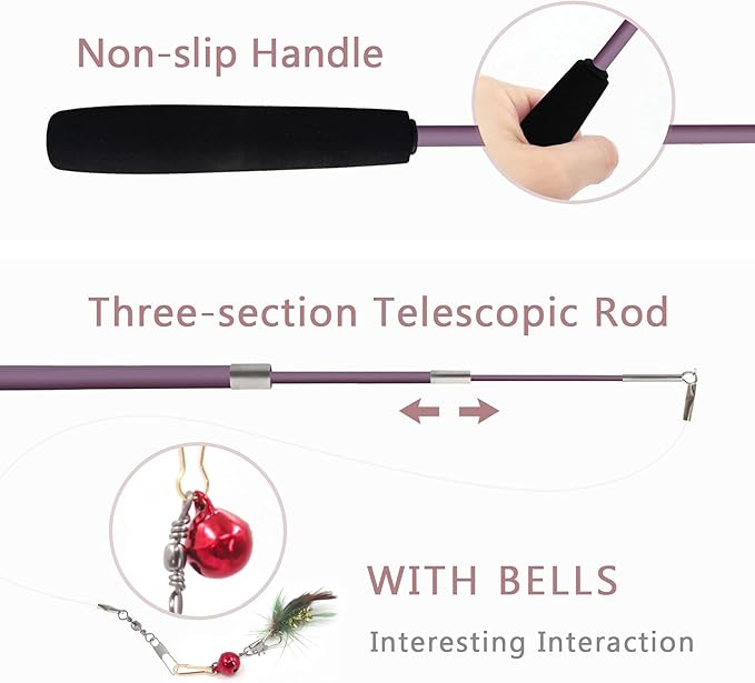 - [Cat Wand Toy] It has a stretchable cat magic wand toy. Have good toughness. The long pole avoids accidentally hurting the owner when playing with the cat. Scalability is also convenient for storage.