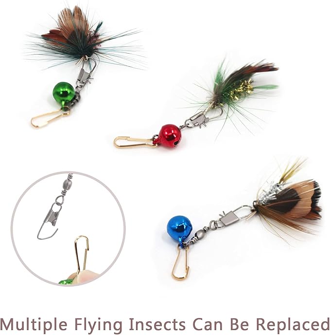- [Simulation of Small Flying Insects] Realistic hand-made small flying insects. When it is waved, it seems that a moth is really flying, attracting the cat's attention. (Flying insects are shipped in random colors, which may be inconsistent with the picture)