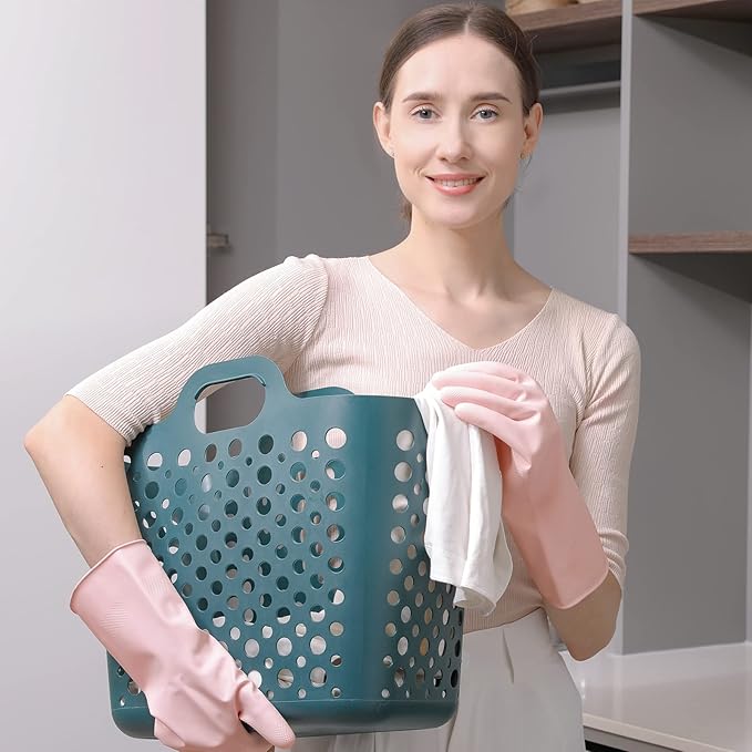 - Premium Quality Rubber Cleaning Gloves: Made from 100% thickened natural latex, these gloves offer exceptional wear resistance, stain-free performance, and odor-free protection. The soft latex ensures flexibility and comfort, providing long-lasting durability for all your household cleaning tasks.