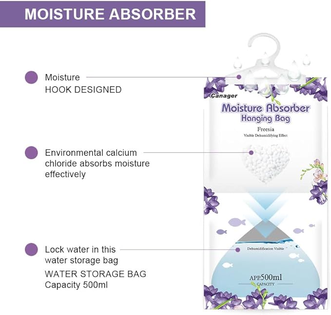 - The hanging moisture absorber bag can effectively absorb the excess moisture in the air, eliminate the peculiar smell as an air freshener, and keep the air fresh in the place,freesia.