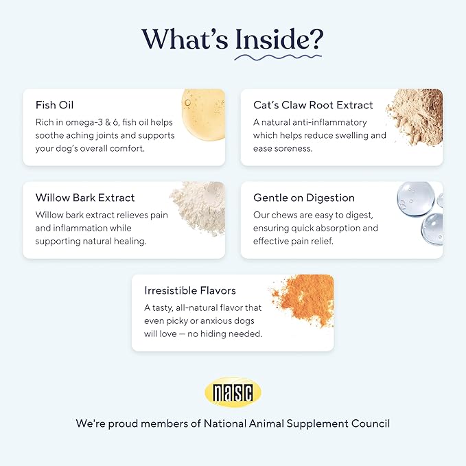 - Support for Joint Comfort: Help your dog stay active and comfortable with Pawfy’s advanced joint support formula with pain management features. Designed to ease stiffness and promote mobility, it supports your dog’s overall vitality and helps them maintain an active lifestyle, even as they age.