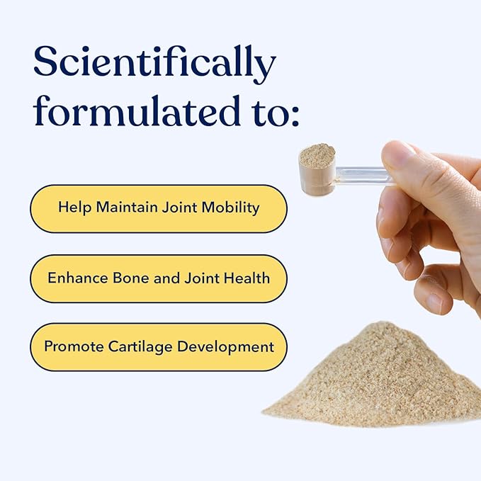 - Powerful Blend - This tasty blend supports hip and joint health, enhances joint function, and eases stiffness.