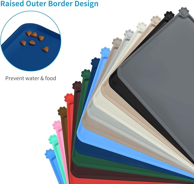AUDWUD Silicone Waterproof Pet Feeding Mats,Anti Slip Bowl Pad, Dog Mat for Food and Water
