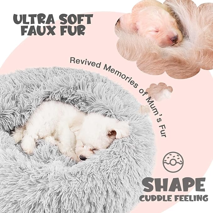 - Calming Dog Bed: Solve pet anxiety and get better sleep and peace of mind. Especially in thunderstorm weather, our pets lack a sense of security and are prone to yelling and anxiety. The plush dog bed in the shape of a donut makes puppies, kittens, and pregnant pets feel embraced, and the blanket adds comfort and alleviates anxiety. It can help your pets stay calm and sleep soundly, even in harsh conditions.