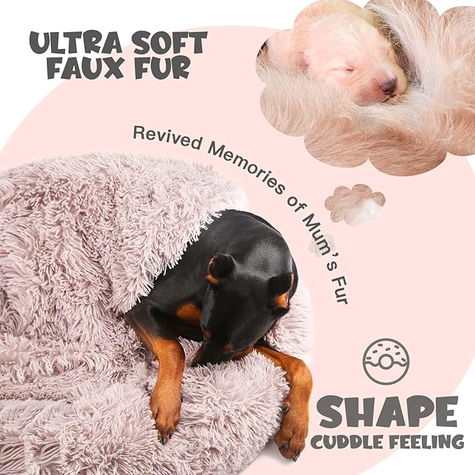 - Dog Bed with Blanket: Our dog bed is not only a donut dog bed but also comes with an oversized blanket. The large blanket design provides four ways to use the blanket: Burrow under the blanket as a nest; Fully open to serve as a donut dog bed; Half rolled up to serve as a pillow; Fully covered, offers more space to stretch out. Regardless of the temperature, the multifunctional dog bed with a blanket ensures that pets find their posture and comfort at any time of the year.
