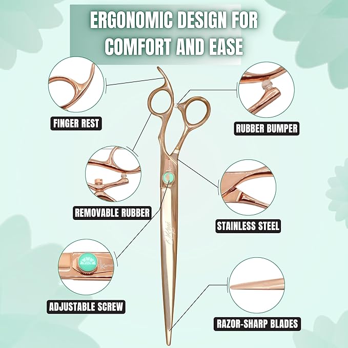 - Elegant Curved Design for Precision Grooming: Achieve smooth, natural contours when trimming around the face, legs, and paws. The gentle curve enhances control and accuracy for professional grooming results.
