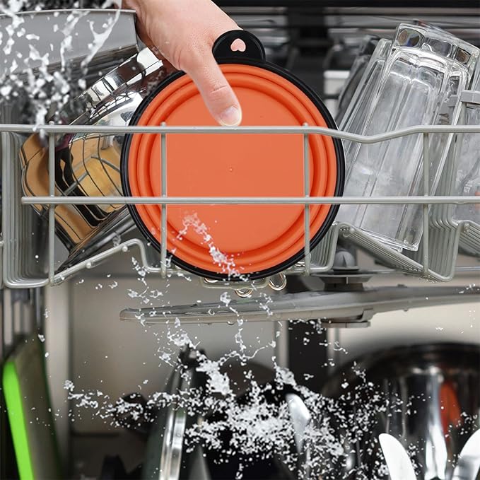 - EASY TO CLEAN: these compact dog food bowls are dishwasher safe,hand wash also available.Please rinse or wipe clean the bowl after each use.One set come with 2 different colors,so easy to consistently designate one bowl for food and one bowl for water.Great pet travel bowls for on the go.
