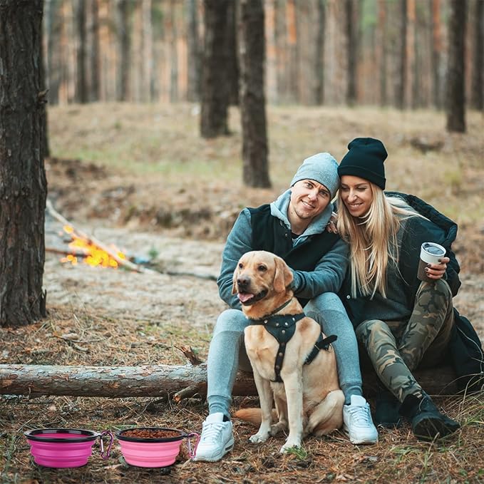 - COLLAPSIBLE DESIGN: These collapsible dog bowls are designed for space saving,easy to expand and fold away,portable and handy,foldable dog travel water bowls are great for traveling,hiking,walking,parking and camping with your dogs/cats.Let them grab a quick bite and drink while on the go.