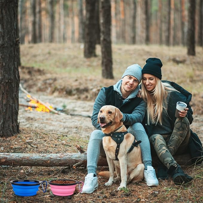 - COLLAPSIBLE DESIGN: These collapsible dog bowls are designed for space saving,easy to expand and fold away,portable and handy,foldable dog travel water bowls are great for traveling,hiking,walking,parking and camping with your dogs/cats.Let them grab a quick bite and drink while on the go.