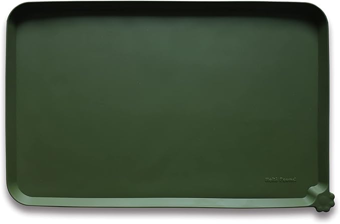 Hoki Found XX-Large Silicone Pet Feeding Mats - Non Slip Cat Dog Bowl Mats - Waterproof for Carpet - Dark Olive