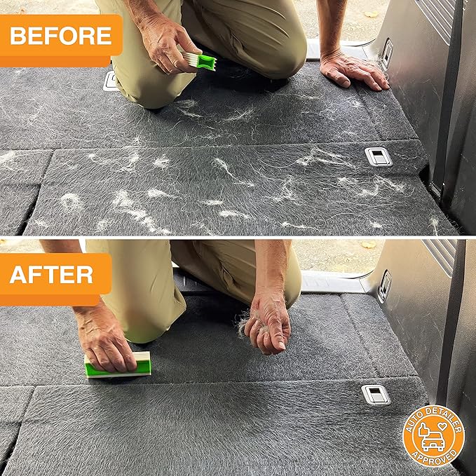 FurDozer Pet Hair Remover & Auto Detailing Tools - Cat & Dog Hair Remover for Carpets, Car Interiors, Couches, Bedding, & Pet Furniture (Green, X3 PRO - 5" Long)