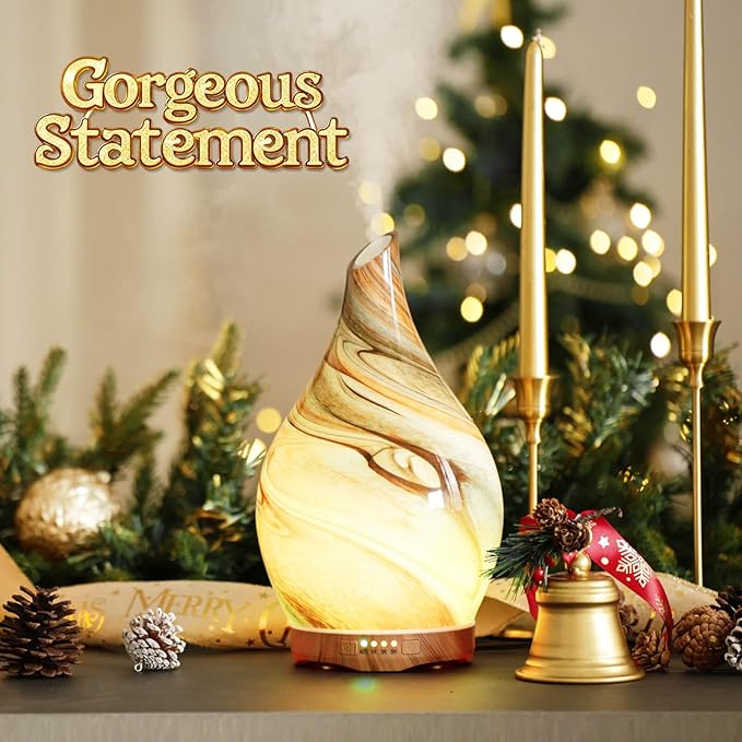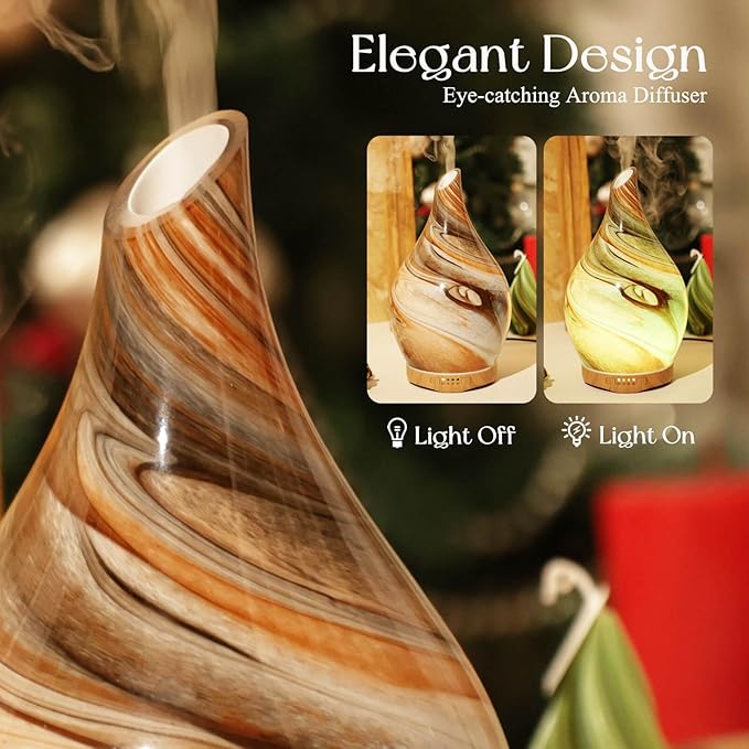 - UNIQUE ART DECORATIVE DESIGN - Our 280ml glass essential oil diffuser has an elegant starry pattern glass cover and wood grain decorative base. It is very suitable for your bedroom, living room, children's room, study room, office, and yoga room.