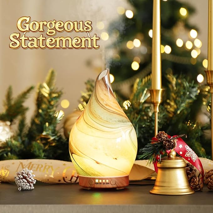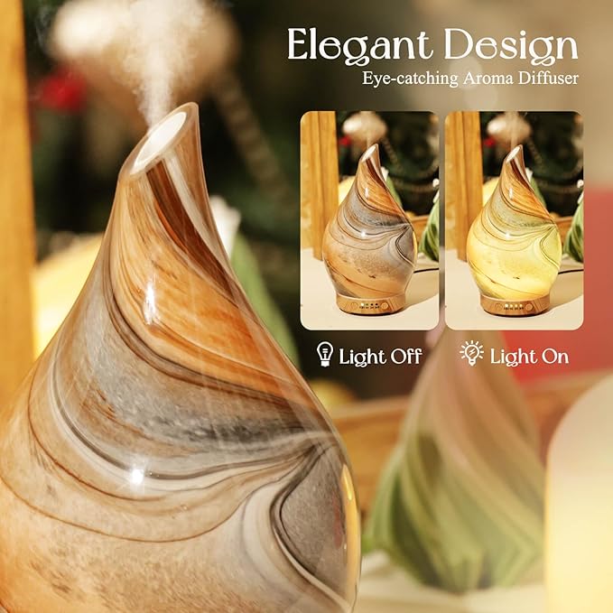 - UNIQUE ART DECORATIVE DESIGN - Our 150ml glass essential oil diffuser has an elegant starry pattern glass cover and wood grain decorative base. It is very suitable for your bedroom, living room, children's room, study room, office, and yoga room.