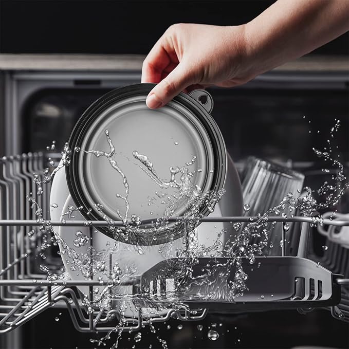 - EASY TO CLEAN: these compact dog food bowls are dishwasher safe,hand wash also available.Please rinse or wipe clean the bowl after each use.One set come with 2 different colors,so easy to consistently designate one bowl for food and one bowl for water.Great pet travel bowls for on the go.