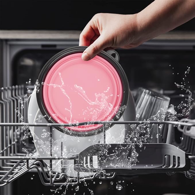 - EASY TO CLEAN: these compact dog food bowls are dishwasher safe,hand wash also available.Please rinse or wipe clean the bowl after each use.One set come with 2 different colors,so easy to consistently designate one bowl for food and one bowl for water.Great pet travel bowls for on the go.