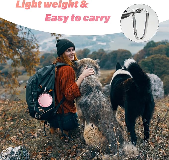- PORTABLE & CONVENIENT: The collapsible pet feeding and watering bowls are lightweight and easy to carry,can be folded down to a compact size,making them easy to store in bags or cars.Come with 2 carabiners, the compact travel bowls can be attached to belt loop,backpack,dog leash,dog collars,dog carrier,bags,luggage and more.Suitable for outdoor/indoor acitivies,outings and trips.