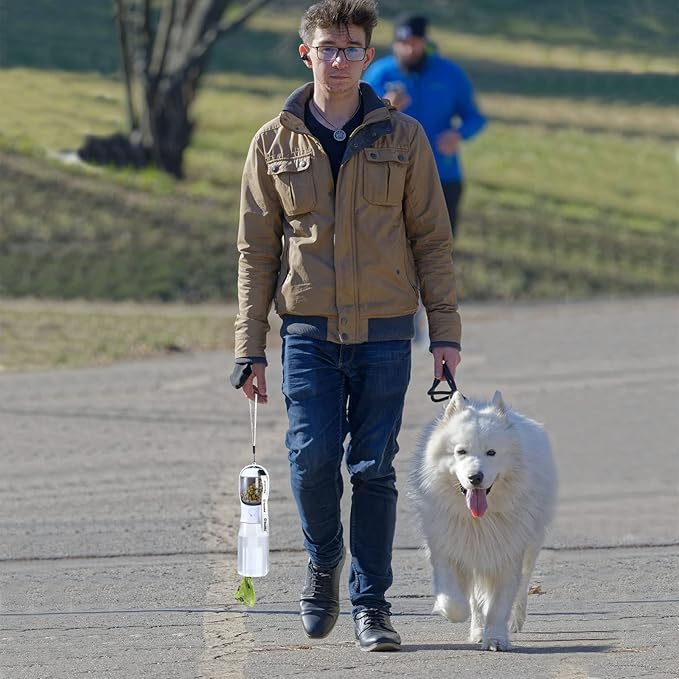 Dog Water Bottle with Food Container & Poop Bag Holder, Travel Water Bowl, Portable Pet Dispenser, Dog Gifts Stuff Accessories Items, Puppy Essentials for Yorkie Chihuahua Walking Hiking