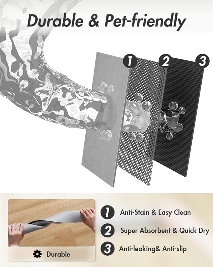 - Super Absorbent & No Stains: Special absorbent surface hide any messy stains completely. Magic pet food mat catch every drip off pets' chin around the pet water or food bowl. Prevent Say goodbye to spread stains and messy feeding area.