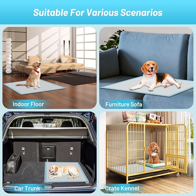 - Thicken & Leak-Proof Design: The dog pee pads extra large are thicker than others, it is more efficiently to prevent floor and carpet from pet urine damage, absorb liquid faster, upgraded thickened PE film is much more leak-proof, tear-resistant, and durable, the polymer core turns urine into gel quickly, keep pets dry and clean all the day