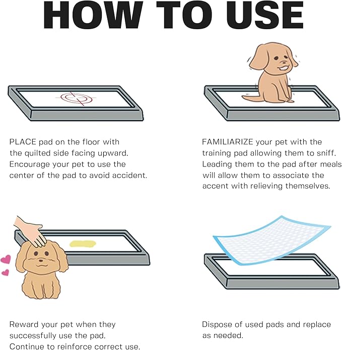 - INSTINCTIVE USE FOR FASTER RESULTS: Each dog pee pads extra large includes a built-in attractant that guides your pup to the right spot - great puppy pee pads learning or reinforcing potty habits.