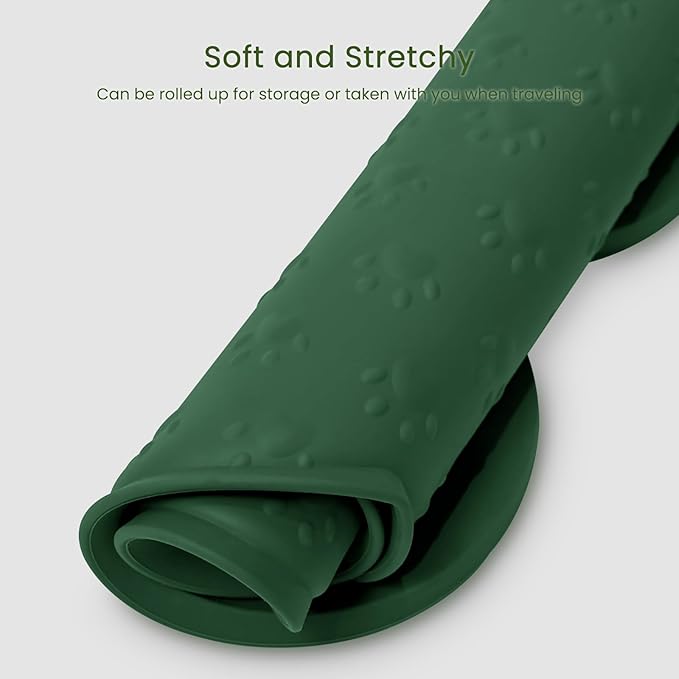 - Easy to Clean - The pet bowl tray pad is dishwasher safe, and this animal feeder mat is soft and stretchy and can be rolled up for storage or taken with you when traveling.