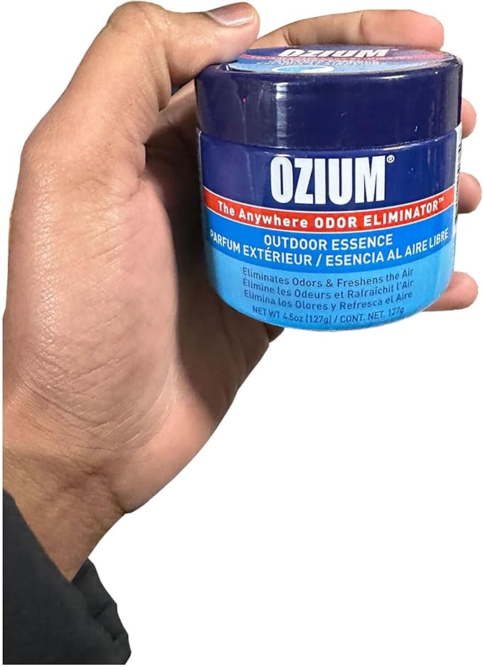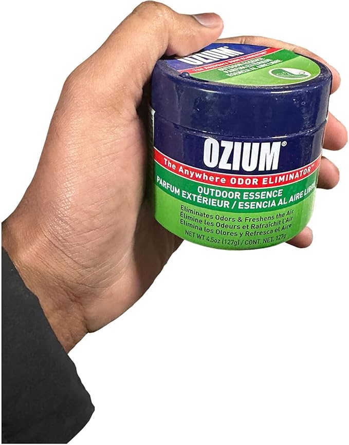 - IDEAL FOR BOTH SMALL AND LARGE SPACES: OZIUM odor eliminating gel eliminates unpleasant odors wherever you have them. Great for small spaces, use the 4. 5oz gel in cars, bathrooms, musty closets, gym bags and trash cans.