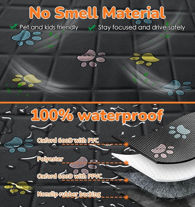 - WATERPROOF & WEARPROOF - Made of 4-layer fabrics, this dog car seat cover is waterproof to protect your seat from mud, liquid, hair, or any mess, durable to avoid scratching your leather seats, and comfortable for long road trip. No more endless sweep